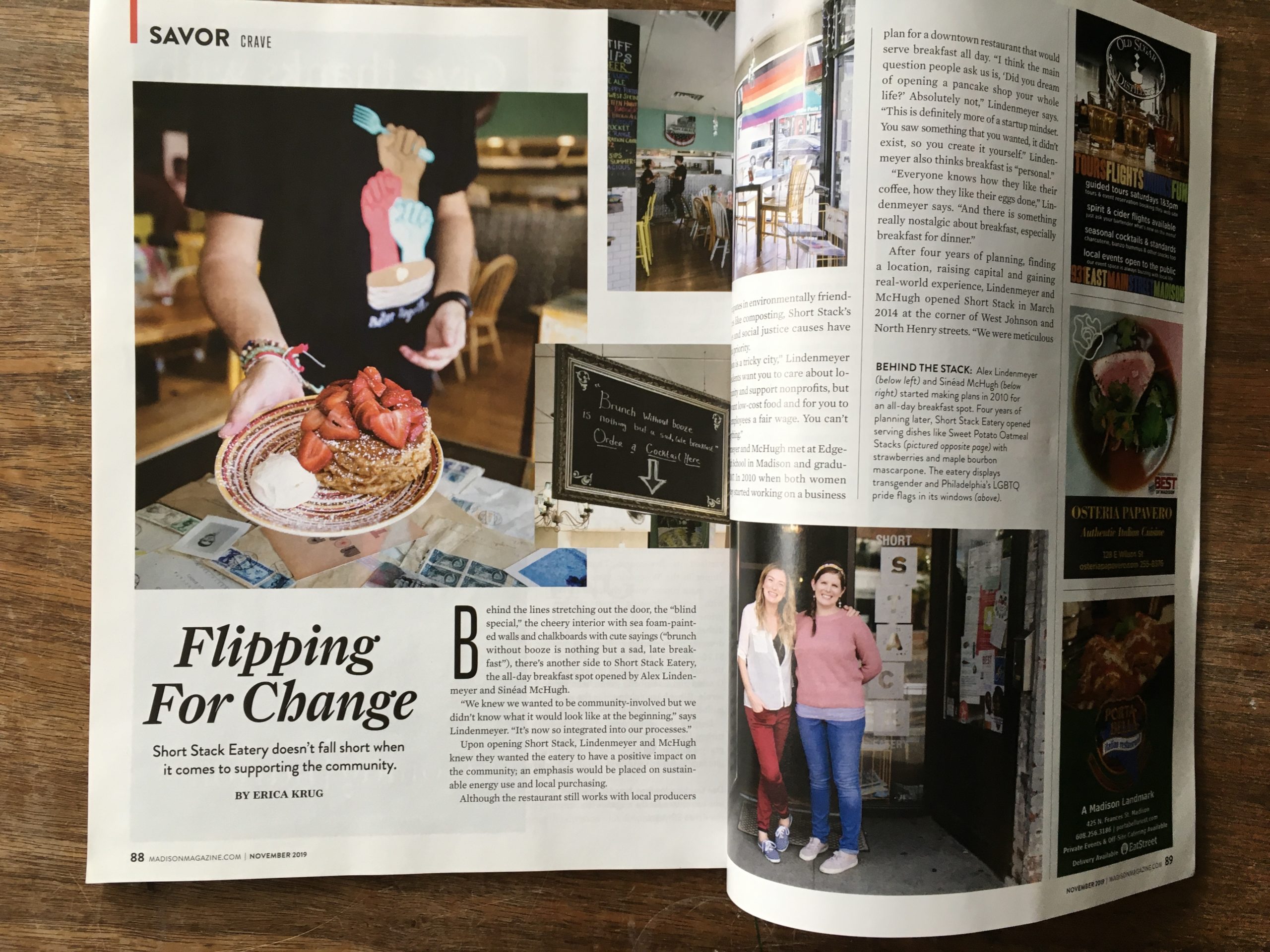 Upon opening Short Stack, Lindenmeyer and McHugh knew they wanted the eatery to have a positive impact on the community; an emphasis would be placed on sustainable energy use and local purchasing.